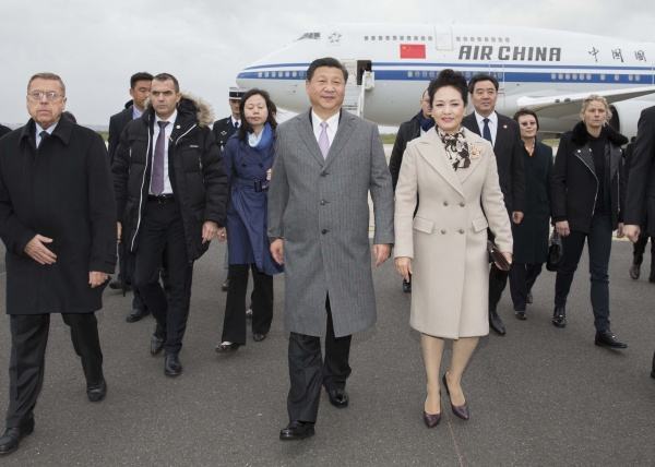 11月29日,國家主席習近平抵達法國首都巴黎,應(yīng)法蘭西共和國總統(tǒng)奧朗德和氣候變化巴黎大會主席法比尤斯邀請,出席氣候變化巴黎大會開幕活動。這是在巴黎奧利國際機場,習近平和夫人彭麗媛受到法國政府高級官員熱情迎接。新華社記者黃敬文攝