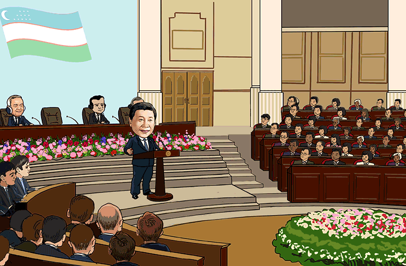 6月22日,正在烏茲別克斯坦訪問的國(guó)家主席習(xí)近平在塔什干烏茲別克斯坦最高會(huì)議立法院發(fā)表題為《攜手共創(chuàng)絲綢之路新輝煌》的重要演講,提出構(gòu)建互利合作網(wǎng)絡(luò)、共創(chuàng)新型合作模式、打造多元合作平臺(tái)、推進(jìn)重點(diǎn)領(lǐng)域項(xiàng)目的新主張,為推動(dòng)“一帶一路”向更高水平、更廣空間邁進(jìn)指明了方向。當(dāng)天,習(xí)主席和卡里莫夫總統(tǒng)在塔什干共同出席“安格連-帕普”鐵路隧道的通車視頻連線活動(dòng)。
