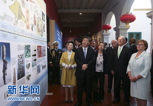 閉幕式后,習(xí)近平和彭麗媛同庫琴斯基夫婦共同參觀“天涯若比鄰-華夏瑰寶展”。