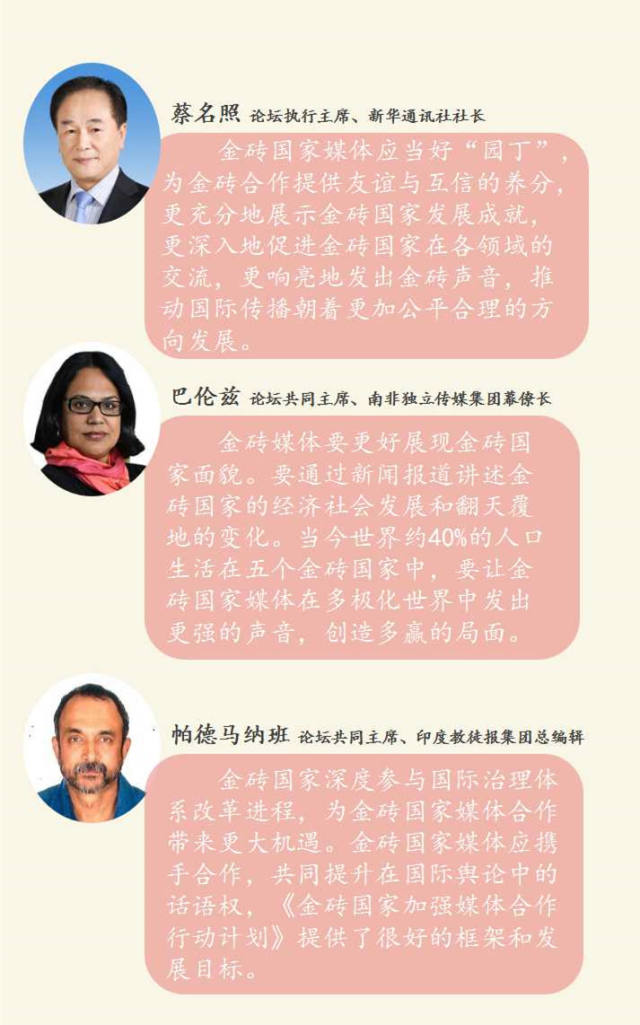 在論壇上,各方還通過了《金磚國家加強(qiáng)媒體合作行動計劃》。相信在未來,金磚國家媒體的合作內(nèi)涵、合作深度、合作廣度將與金磚國家戰(zhàn)略伙伴關(guān)系一同進(jìn)一步拓展深化!