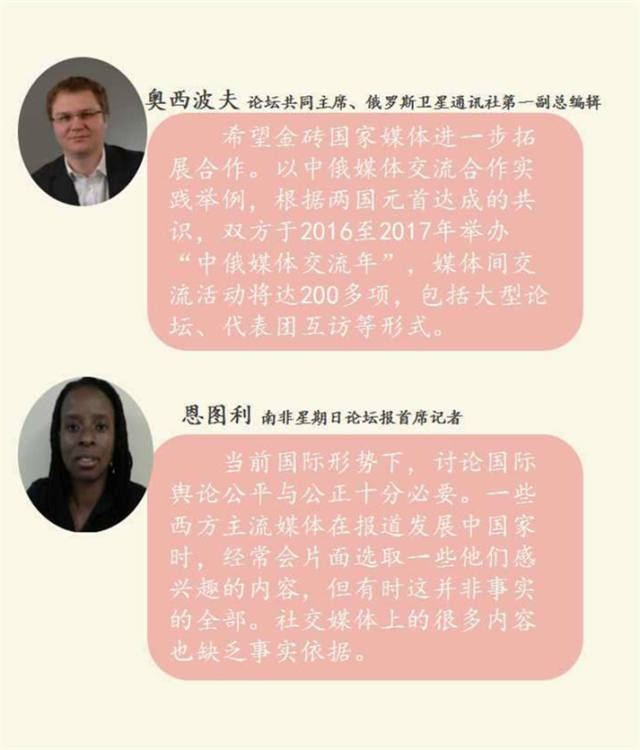 與會代表對提升金磚國家話語權(quán)有哪些構(gòu)想?未來將如何開展合作?將如何順應(yīng)信息傳播新形勢?一起聽聽他們怎么說!