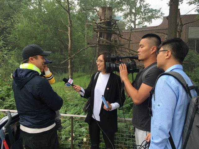 “這幾天這邊下雨,天氣比較涼爽,它們都表現(xiàn)得很適應(yīng)。第一天下雨的時(shí)候,‘夢(mèng)夢(mèng)’就表現(xiàn)得很興奮,雖然沒有到室外活動(dòng),但是它在室內(nèi)就感受到溫度的變化。通過(guò)監(jiān)控,我們看到,它在室內(nèi)活動(dòng)場(chǎng)玩得很高興,不停地到門口那邊,想要看看它的新家……”