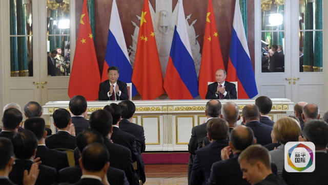 7月4日,國家主席習(xí)近平在莫斯科克里姆林宮同俄羅斯總統(tǒng)普京舉行會(huì)談。 這是會(huì)談后,兩國元首共同出席簽字儀式。新華社記者 饒愛民 攝