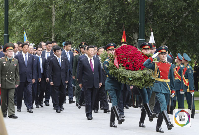 7月4日,國家主席習(xí)近平在莫斯科向俄羅斯無名烈士墓敬獻(xiàn)花圈。新華社記者 謝環(huán)馳 攝
