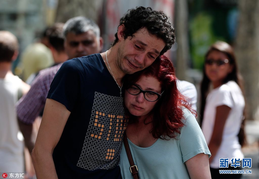 當(dāng)?shù)貢r(shí)間2017年8月18日,西班牙巴塞羅那,當(dāng)?shù)孛癖婞c(diǎn)燭獻(xiàn)花悼念恐襲事件遇難者。17日,一輛白色貨車在巴塞羅那市中心蘭布拉大道加泰羅尼亞廣場附近沖撞人群,據(jù)媒體報(bào)道,死亡人數(shù)已經(jīng)升至14人。(圖片來源:東方IC)
