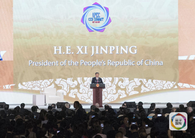 11月10日,國家主席習近平應(yīng)邀出席在越南峴港舉行的亞太經(jīng)合組織工商領(lǐng)導人峰會并發(fā)表題為《抓住世界經(jīng)濟轉(zhuǎn)型機遇 謀求亞太更大發(fā)展》的主旨演講。新華社記者王曄攝