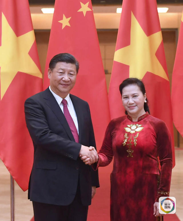 11月12日,中共中央總書記、國家主席習(xí)近平在河內(nèi)會見越南國會主席阮氏金銀。新華社記者張鐸攝