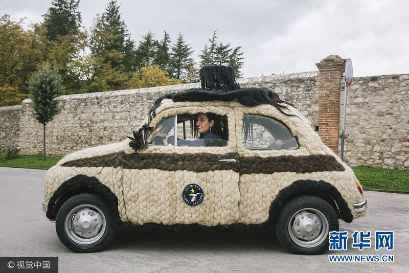 意大利帕杜拉,一位意大利發(fā)型設(shè)計(jì)師Maria Lucia Mugno花費(fèi)了超過(guò)8萬(wàn)英鎊來(lái)裝飾自己的車子,這讓她獲得了吉尼斯世界紀(jì)錄。這項(xiàng)工程需要150個(gè)小時(shí)來(lái)完成,用于裝飾的頭發(fā)總重量達(dá)到100公斤。(圖片來(lái)源:視覺(jué)中國(guó))