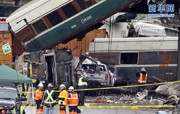 美國有線電視新聞網(wǎng)報(bào)道,由西雅圖開往波特蘭的501次列車18日7時40分左右在杜邦脫軌,事發(fā)地位于塔科馬以南大約30公里。列車14節(jié)車廂中13節(jié)脫軌,其中數(shù)節(jié)沖出高架橋,墜落在5號州際公路路面,場面一片混亂。