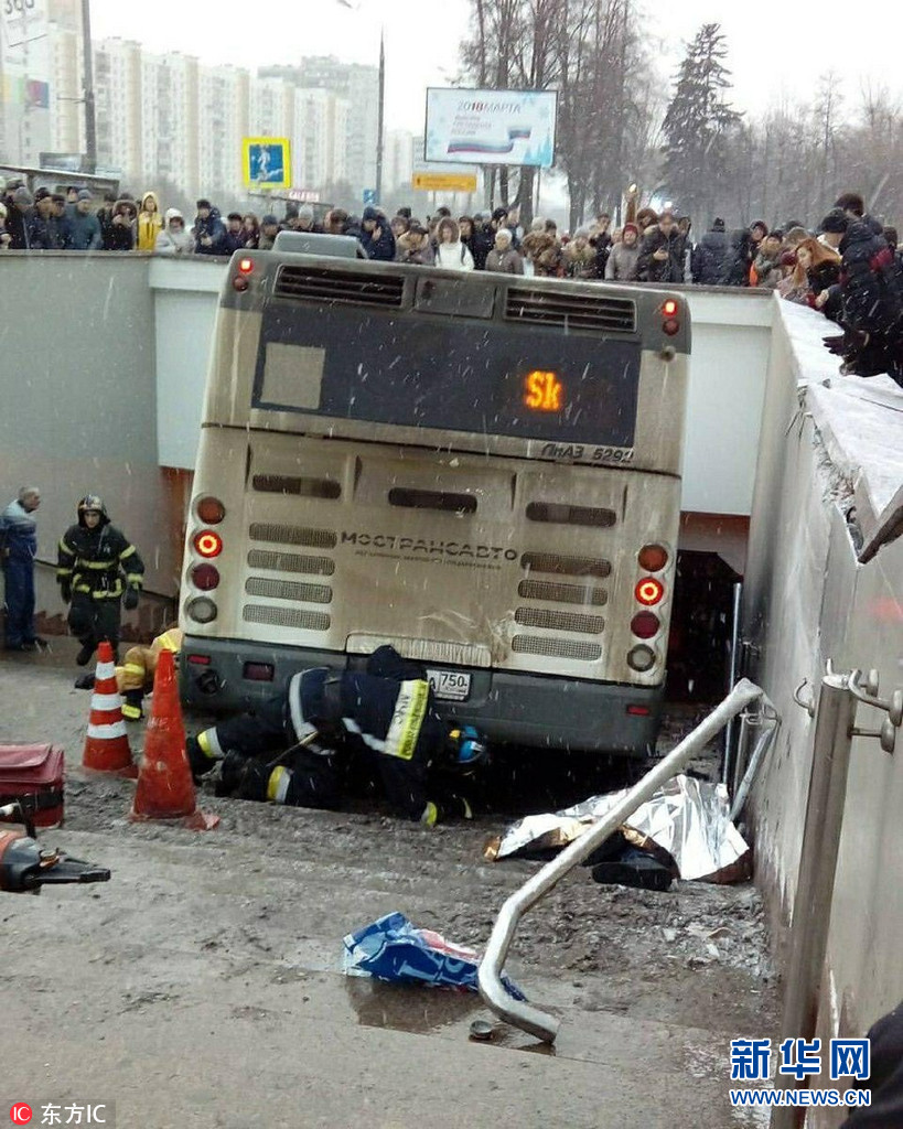 莫斯科一輛公交車開進(jìn)地下通道 致5死15傷