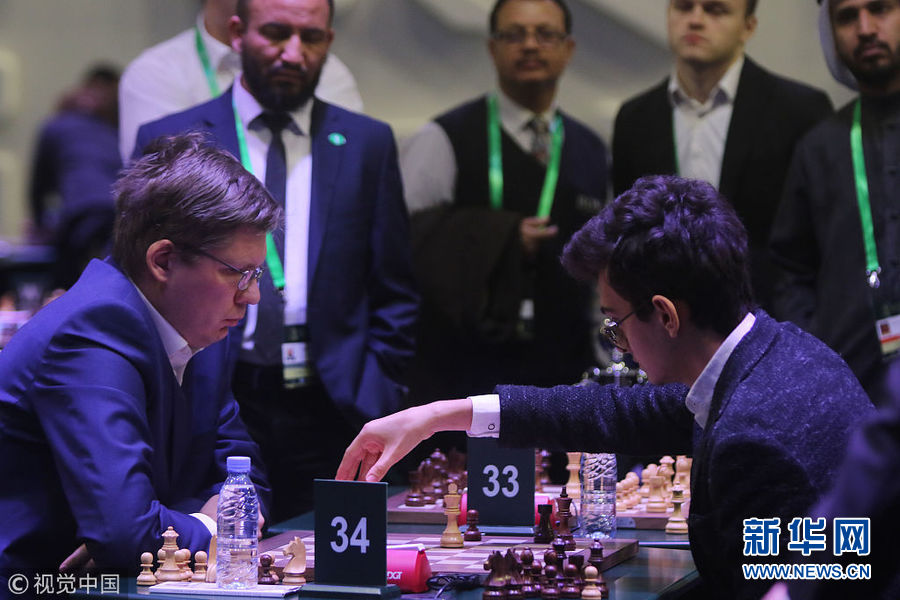 12月26日,沙特阿拉伯利雅得,世界快棋錦標(biāo)賽在當(dāng)?shù)嘏e行。國(guó)際象棋聯(lián)合會(huì)24日說(shuō),7名以色列選手因簽證申請(qǐng)?jiān)馍程匕⒗芙^無(wú)緣參賽。(圖片來(lái)源:視覺(jué)中國(guó))