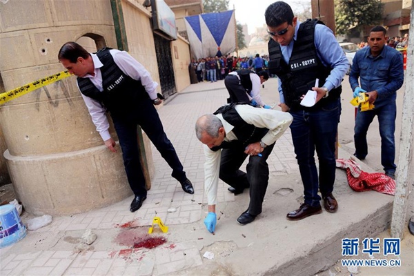 12月29日,警察在埃及開羅教堂襲擊事件現(xiàn)場(chǎng)調(diào)查。新華社發(fā)(艾哈邁德·戈馬攝)
