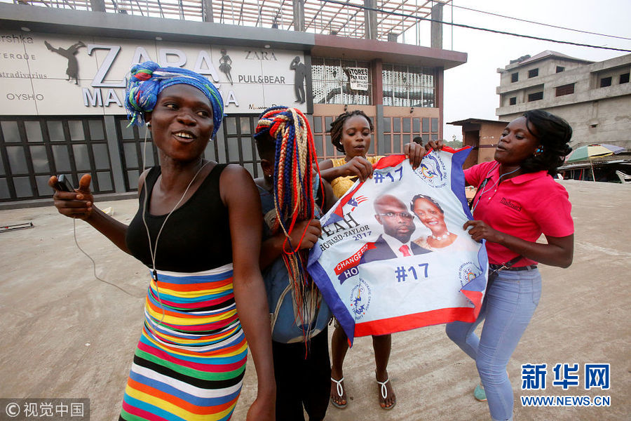 前世界足球先生維阿當(dāng)選利比里亞總統(tǒng) 支持者上街慶祝