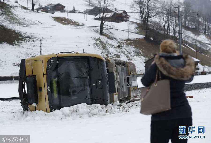 1月3日,瑞士倫克,風(fēng)暴“埃莉諾”來(lái)襲,一列火車被大風(fēng)吹得脫軌了。風(fēng)暴“埃莉諾”襲擊該國(guó),數(shù)千戶家庭斷電。瑞士氣象局對(duì)該國(guó)大部分地區(qū)發(fā)出了大風(fēng)警報(bào),許多道路被關(guān)閉,一些航班被取消,部分地區(qū)的客輪交通被迫中斷。瑞士警方稱,有數(shù)人被困在圣加侖州的一處滑雪纜車上。而在倫克地區(qū),大風(fēng)把一列火車吹得脫軌了。(圖片來(lái)源:視覺(jué)中國(guó))