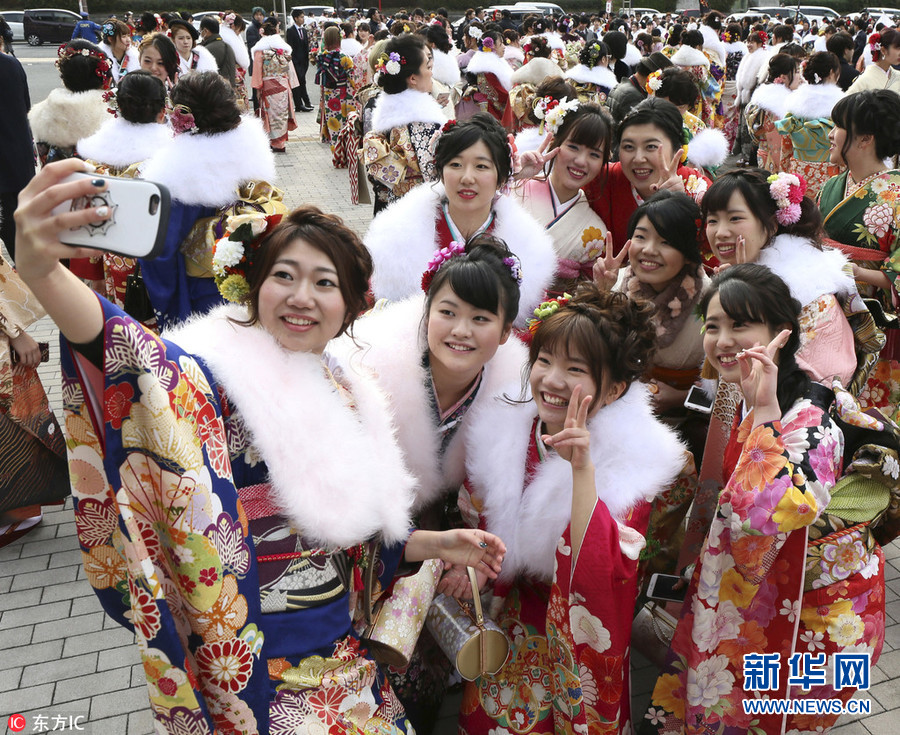日本和服妹子出席“成人節(jié)”慶祝儀式 開心玩自拍