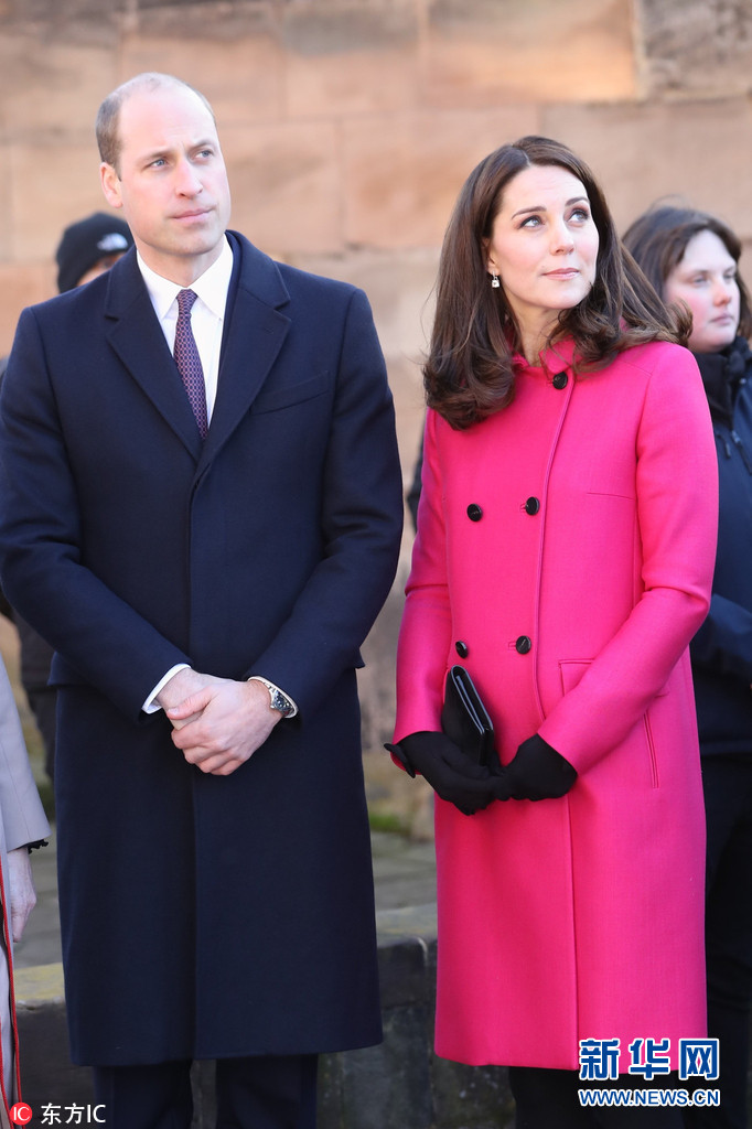 1月16日,英國西米德蘭茲郡考文垂,威廉王子夫婦造訪考文垂大教堂,凱特王妃一襲紅色大衣挺孕肚與人群熱情互動(dòng)。(圖片來源:東方IC)