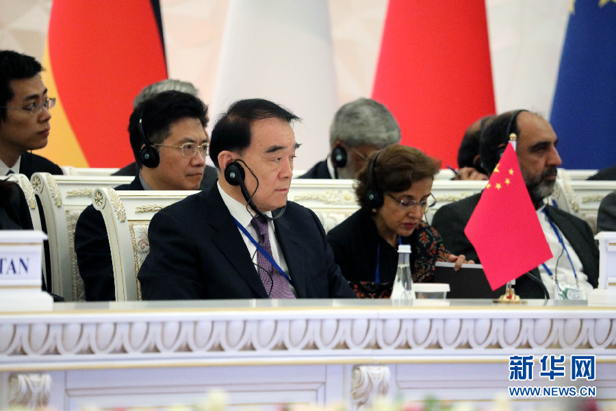 中國外交部副部長李保東(前排左一)率團(tuán)參加會(huì)議。阿富汗問題高級(jí)別會(huì)議27日在烏茲別克斯坦首都塔什干舉行。新華社記者周良攝