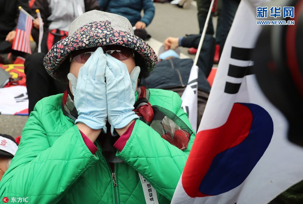 當(dāng)?shù)貢r間2018年4月6日,韓國首爾,在首爾中央地方法院前,舉行集會的韓國前總統(tǒng)樸槿惠的支持者得知樸槿惠一審獲刑24年傷心落淚。據(jù)報道,首爾中央地方法院對韓國前總統(tǒng)樸槿惠作出一審宣判,判處其有期徒刑24年,罰款180億韓元(約合人民幣1.06億元)。(圖片來源:東方IC)