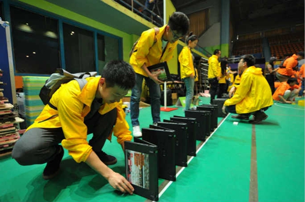 據(jù)吉尼斯世界紀(jì)錄官網(wǎng)報(bào)道,近日,聯(lián)想集團(tuán)在北京航空航天大學(xué)體育館舉辦了以“同心聚力,勇往直前”為主題的誓師大會(huì),1300名聯(lián)想員工參加了此次大會(huì),并創(chuàng)造了一項(xiàng)新的吉尼斯世界紀(jì)錄稱號(hào)。在吉尼斯世界紀(jì)錄認(rèn)證官的見(jiàn)證下,所有員工歷時(shí)兩小時(shí),用520臺(tái)筆記本電腦成功創(chuàng)造“以多米諾骨牌形式擺放并推倒最多筆記本電腦”的新紀(jì)錄。