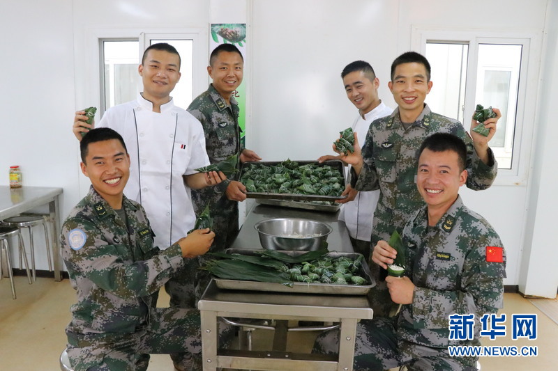“官兵們在遠(yuǎn)離祖國和親人的異國他鄉(xiāng)執(zhí)行維和任務(wù),在端午節(jié)能夠吃到粽子是官兵們的共同心愿。”炊事班長彭照陽一邊包著粽子,一邊欣喜地對記者說。