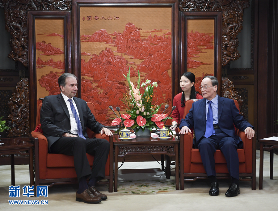7月16日,國家副主席王岐山在北京中南海會(huì)見由黨主席斯齊亞沃尼率領(lǐng)的阿根廷共和國方案黨干部考察團(tuán)。 新華社記者 張領(lǐng) 攝