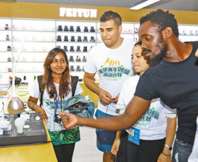 來(lái)自印度、南非、俄羅斯等金磚國(guó)家的青年創(chuàng)業(yè)者,在義烏國(guó)際商貿(mào)城內(nèi)學(xué)習(xí)創(chuàng)業(yè)經(jīng)驗(yàn)。人民視覺(jué)