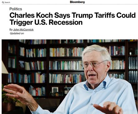 而在上周末剛剛結(jié)束的這么一場(chǎng)為期三天、并有數(shù)百人參加的活動(dòng)上,科赫兄弟中年長(zhǎng)的哥哥查爾斯·科赫就公開宣布他對(duì)美國(guó)政府的貿(mào)易戰(zhàn)行為很擔(dān)憂,認(rèn)為美國(guó)對(duì)中國(guó)等多個(gè)國(guó)家揮舞的關(guān)稅大棒將令美國(guó)經(jīng)濟(jì)面臨“災(zāi)難性”的衰退風(fēng)險(xiǎn)。