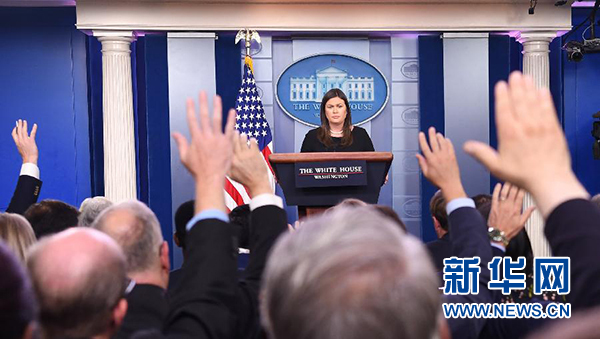 8月2日,在美國首都華盛頓,白宮發(fā)言人桑德斯出席記者會(huì)。新華社記者劉杰攝