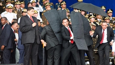 8月4日,在委內(nèi)瑞拉首都加拉加斯,安全人員保護(hù)總統(tǒng)馬杜羅。新華社發(fā)