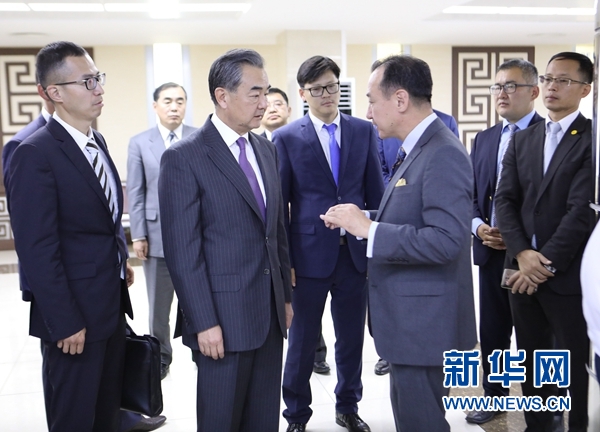 王毅訪問蒙古國期間,25日在蒙古國外長朝格特巴特爾的陪同下專程來到烏蘭巴托成吉思汗國際機場考察“一帶一路”快速通道并現(xiàn)場了解情況。