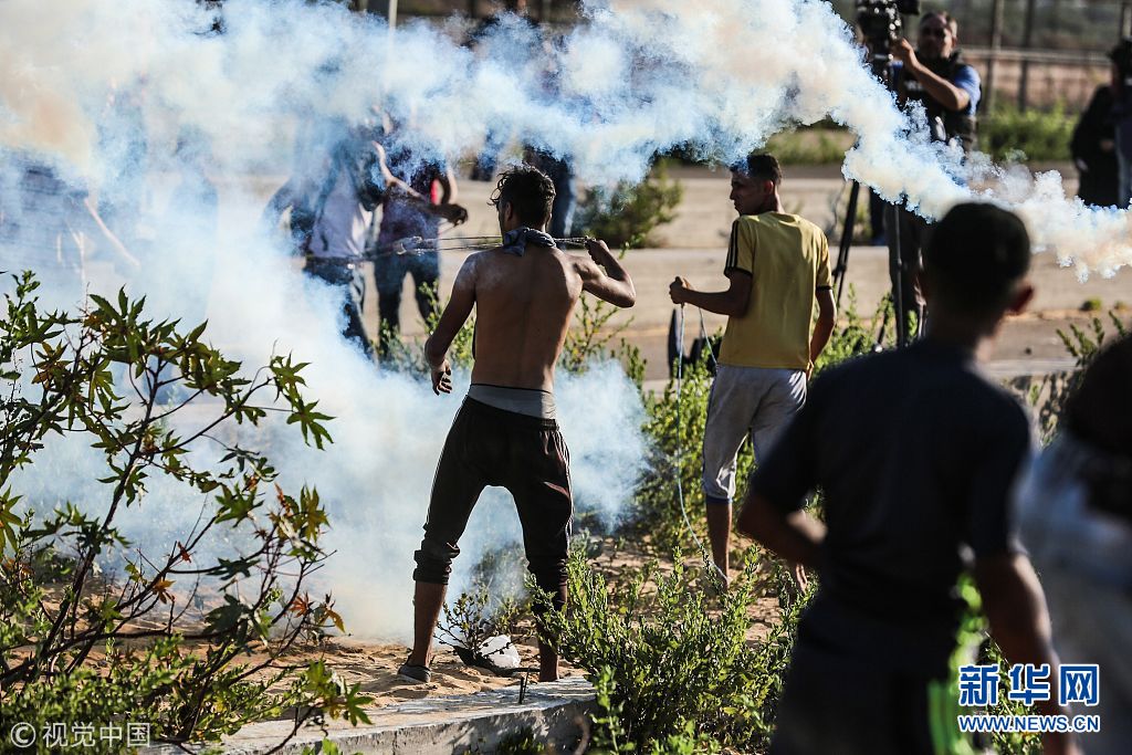 ????? 當(dāng)?shù)貢r(shí)間2018年9月18日,加沙,巴勒斯坦人在加沙地帶北部邊境緩沖地帶舉行集會(huì),抗議以色列對該地區(qū)的干預(yù),遭到以色列軍隊(duì)反擊。兩名巴勒斯坦抗議者在集會(huì)上被以軍士兵開槍打死。(圖片來源:視覺中國)