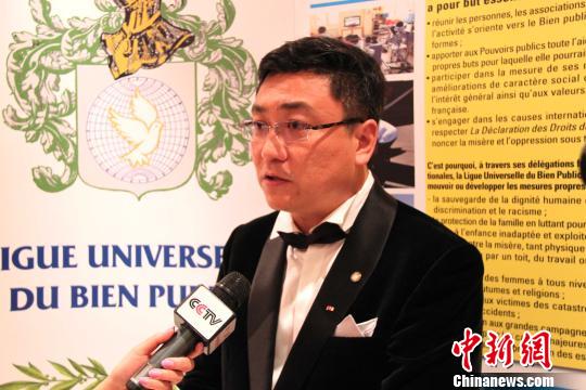 9月21日晚,中國工筆畫家崔景哲在巴黎榮獲全球公益聯(lián)盟文學(藝術(shù))金質(zhì)勛章,也是此次頒獎典禮所有獲獎?wù)咧形ㄒ灰晃恢袊恕D為崔景哲接受媒體采訪。李洋 攝