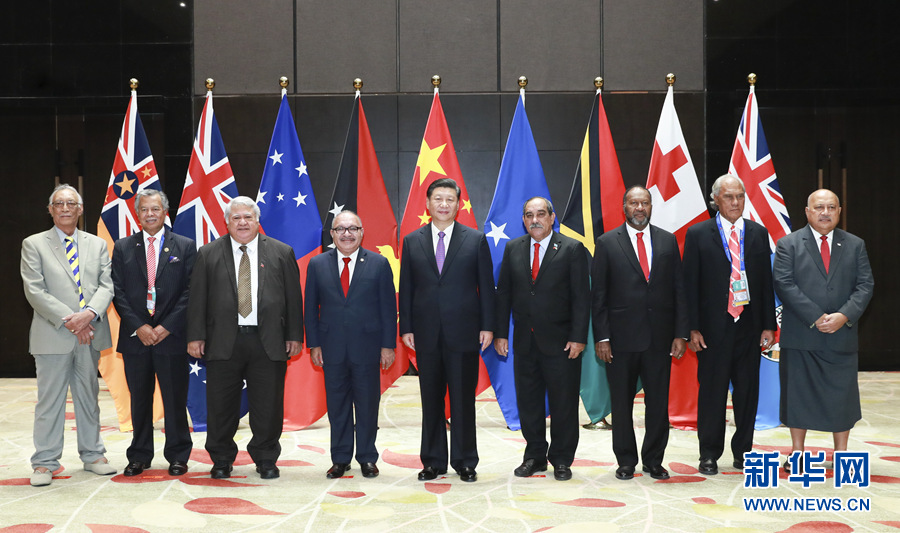 11月16日,國家主席習(xí)近平在莫爾茲比港同巴布亞新幾內(nèi)亞總理奧尼爾、密克羅尼西亞聯(lián)邦總統(tǒng)克里斯琴、薩摩亞總理圖伊拉埃帕、瓦努阿圖總理薩爾瓦伊、庫克群島總理普納、湯加首相波希瓦、紐埃總理塔拉吉等建交太平洋島國領(lǐng)導(dǎo)人以及斐濟(jì)政府代表、國防部長昆布安博拉舉行集體會(huì)晤。習(xí)近平主持會(huì)晤并發(fā)表主旨講話。 新華社記者 謝環(huán)馳 攝