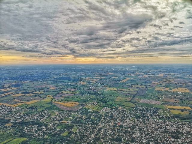 從飛機(jī)上俯瞰布宜諾斯艾利斯和拉普拉塔河南岸。(新華社記者王曄攝)