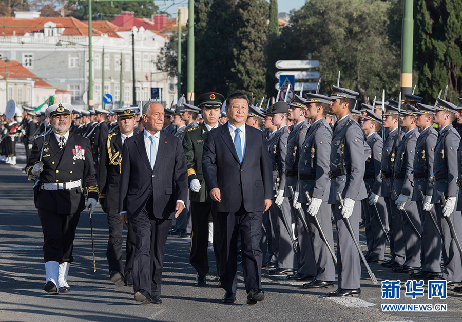 冬日的里斯本,晴空萬里、陽(yáng)光燦爛。當(dāng)?shù)貢r(shí)間4日下午,在伊比利亞半島最大的帝國(guó)廣場(chǎng)上,葡萄牙總統(tǒng)德索薩為習(xí)主席舉行隆重且富有葡萄牙特色的歡迎儀式。