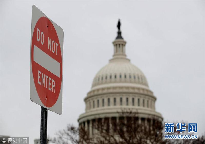 當(dāng)?shù)貢r(shí)間2019年1月7日,美國(guó)華盛頓,美國(guó)國(guó)會(huì)。因美國(guó)國(guó)會(huì)兩黨仍無法就臨時(shí)撥款法案和美墨邊界墻問題達(dá)成一致,截至7日,美國(guó)部分聯(lián)邦政府機(jī)構(gòu)的停擺狀態(tài)已進(jìn)入第三周。有白宮高級(jí)官員6日透露,由于談判持續(xù)僵持,美國(guó)總統(tǒng)特朗普現(xiàn)在已經(jīng)傾向于宣布國(guó)家進(jìn)入緊急狀態(tài)。(圖片來源:視覺中國(guó))
