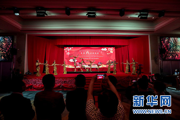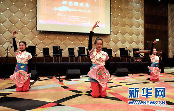 1月30日,在科威特的費爾瓦尼耶省,來自南京藝術(shù)團(tuán)的演員在中國駐科威特使館新春招待會上表演民族舞蹈。新華社發(fā)(約瑟夫 攝)