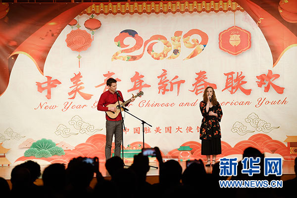 2月16日,在美國(guó)首都華盛頓,演員在中美青年新春聯(lián)歡活動(dòng)上演唱歌曲《因?yàn)閻?ài)情》。 新華社記者 劉杰 攝