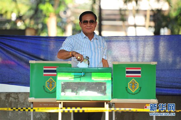 泰國總理巴育8時左右前往曼谷的一處投票站,排隊等候投票。他對媒體說,希望泰國人民參與大選投票,合理行使選舉權(quán),團結(jié)一致,共同解決國家所面臨的問題。