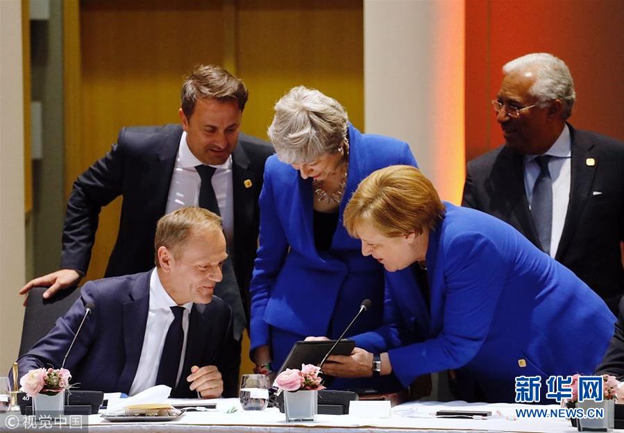 當(dāng)?shù)貢r(shí)間2019年4月10日,比利時(shí)布魯塞爾,歐盟領(lǐng)導(dǎo)人會(huì)議召開(kāi),討論英國(guó)“脫歐”議題。據(jù)路透社消息,歐盟各成員國(guó)達(dá)成一致,允許英國(guó)延期“脫歐”至10月底,6月份歐盟還將對(duì)此決定再次評(píng)估。歐洲理事會(huì)主席圖斯克表示,歐盟各成員國(guó)達(dá)成一致,允許英國(guó)延期“脫歐”,現(xiàn)在他將與英國(guó)首相特雷莎·梅舉行會(huì)談,確定英國(guó)是否接受這一提議。(圖片來(lái)源:視覺(jué)中國(guó))