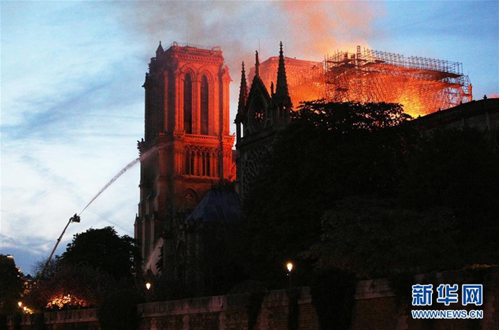 4月15日,在法國(guó)巴黎,巴黎圣母院燃起大火。位于法國(guó)首都的巴黎圣母院15日傍晚發(fā)生大火,造成巴黎圣母院塔尖倒塌,建筑損毀嚴(yán)重。目前尚無(wú)人員傷亡的報(bào)告。新華社記者 高靜 攝