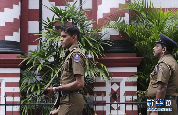 4月26日,在斯里蘭卡科倫坡,警察在城市街道上警戒。新華社發(fā)(王申攝)