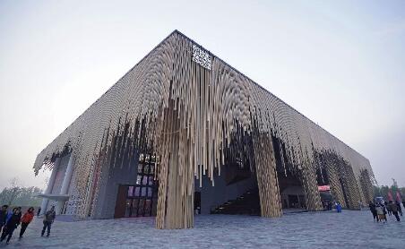 國(guó)際園里的中國(guó)館名叫“唐園”,唐園里有座唐朝風(fēng)格的兩層建筑,建筑材料全部來(lái)自中國(guó)。唐園庭院里有中式園景盆栽,兼具唐風(fēng)和蘇州園林之美。唐園四周被修長(zhǎng)的綠竹環(huán)繞。