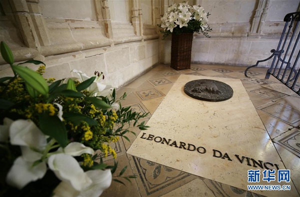 2019年5月2日,法國總統(tǒng)馬克龍和意大利總統(tǒng)馬塔雷拉共同在法國昂布瓦茲城堡的圣·于貝爾禮拜堂,向達(dá)芬奇墓獻(xiàn)上鮮花。兩國總統(tǒng)的行程從昂布瓦茲城堡到克洛·呂斯城堡,再到香波堡,沿著達(dá)芬奇在法國生活過的足跡走了一圈,也拉開達(dá)芬奇逝世500周年紀(jì)念活動(dòng)的序幕。