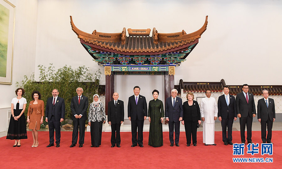 習(xí)近平和彭麗媛歡迎出席亞洲文明對話大會的外方領(lǐng)導(dǎo)人夫婦及嘉賓