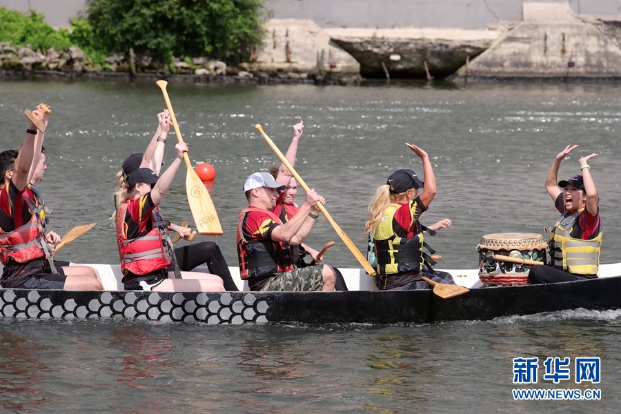 6月22日,由芝加哥華商會(huì)舉辦的第19屆芝加哥龍舟賽在中國(guó)城譚繼平公園舉行,這是參賽的隊(duì)員在比賽。記者 汪平 攝