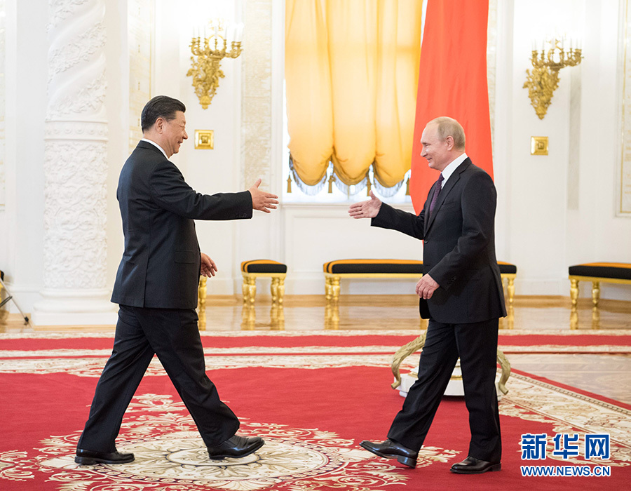 6月5日,克里姆林宮2層喬治大廳燈火通明。習近平主席和俄羅斯總統(tǒng)普京從數(shù)十米長的紅毯兩端相向走來。