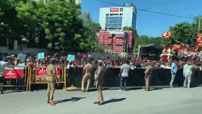 習(xí)主席的車隊駛離機場前往市區(qū)沿途,眾多當(dāng)?shù)貙W(xué)生和群眾簇擁在街道兩旁,揮舞中印兩國國旗,手舉習(xí)主席和莫迪總理照片,歡呼“中印友好”,表達對習(xí)主席的熱烈歡迎。