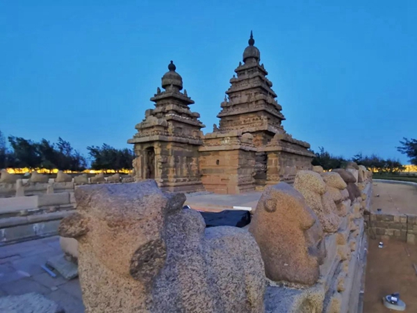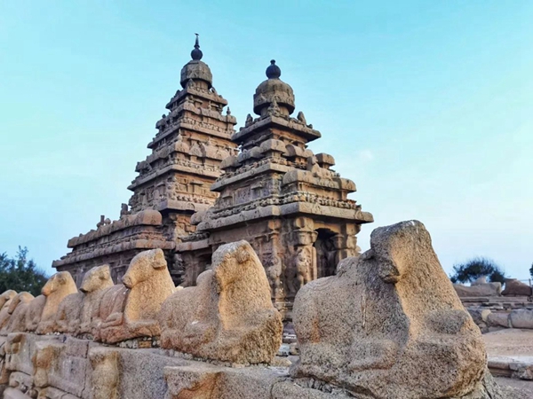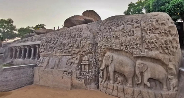 馬哈巴利普拉姆古寺廟建于公元7至8世紀,由阿周那石雕、五戰(zhàn)車神廟、海岸神廟等古跡組成。