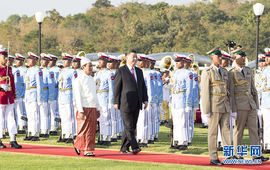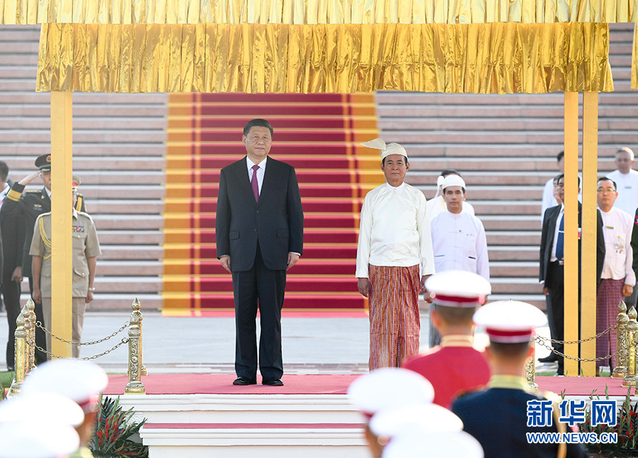 習(xí)近平出席緬甸總統(tǒng)溫敏舉行的歡迎儀式